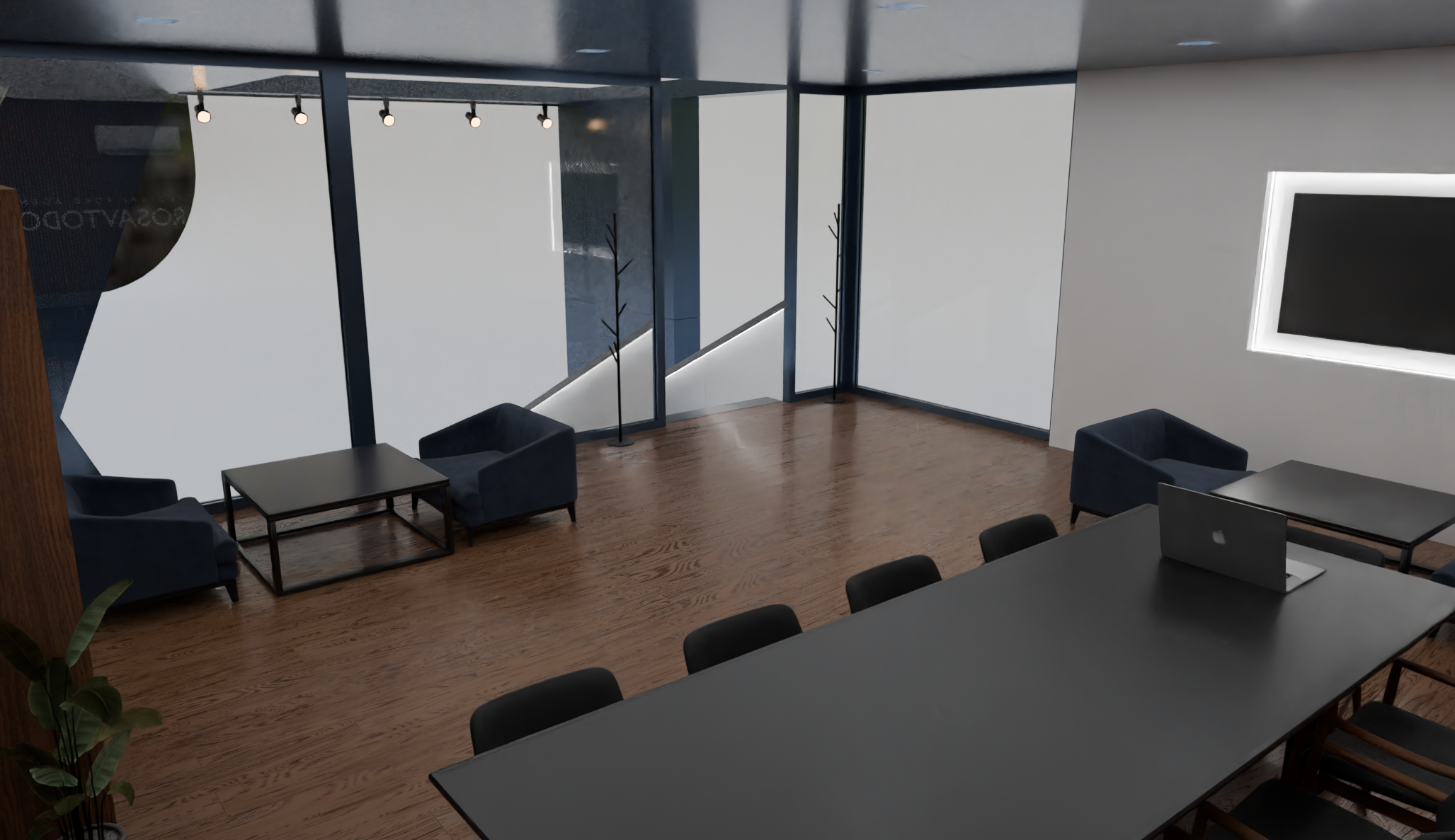 Ключевыми элементами выступают фирменные цвета компании: синий и серый, создающие ощущение надёжности и уверенности. Интерьер стенда оснащен светодиодной подсветкой и крупными экранами, демонстрирующими интерактивные презентации проектов. Просторные проходы и удобная навигация делают посещение стенда приятным и полезным для каждого гостя.